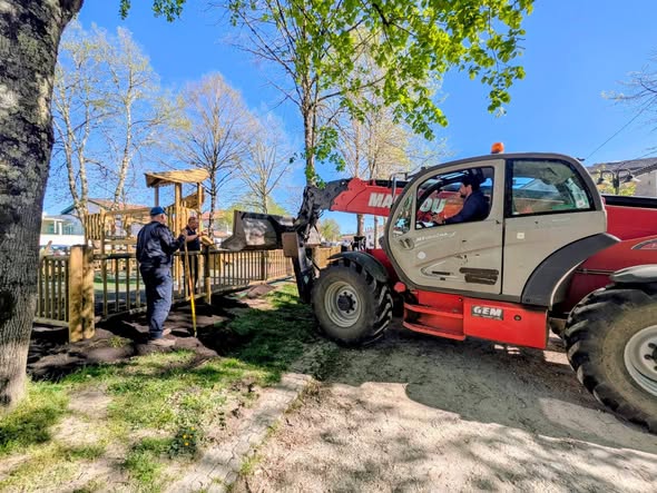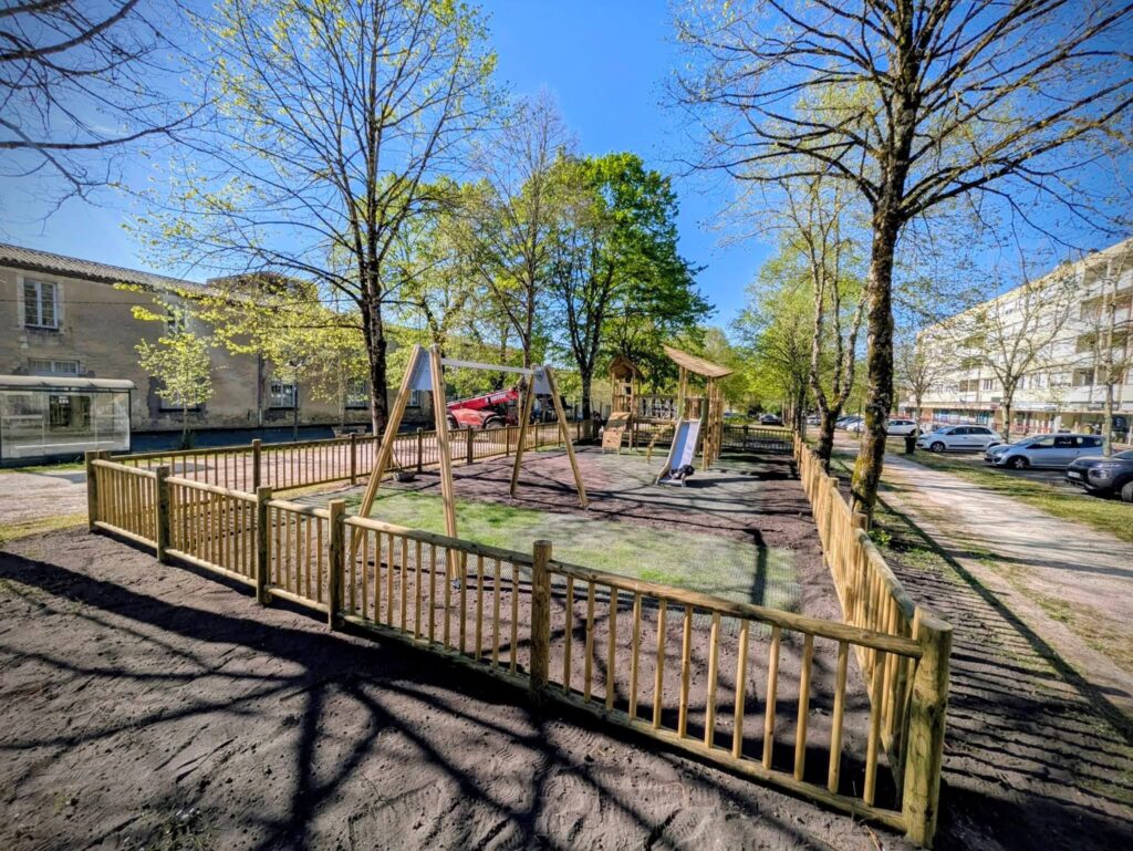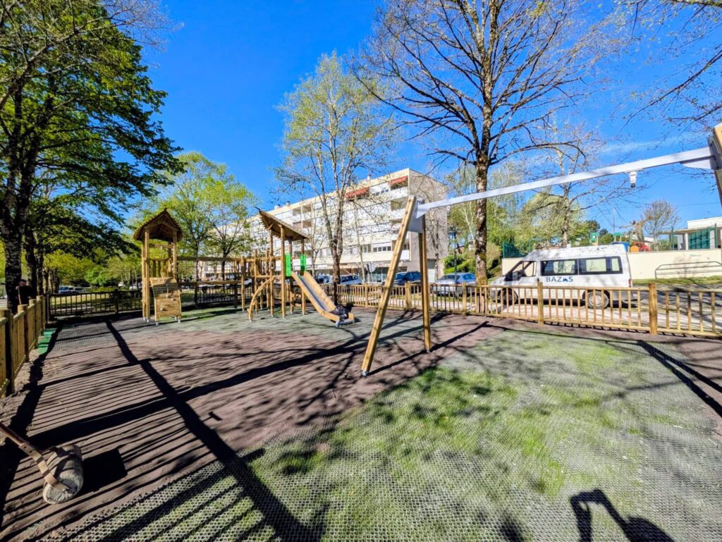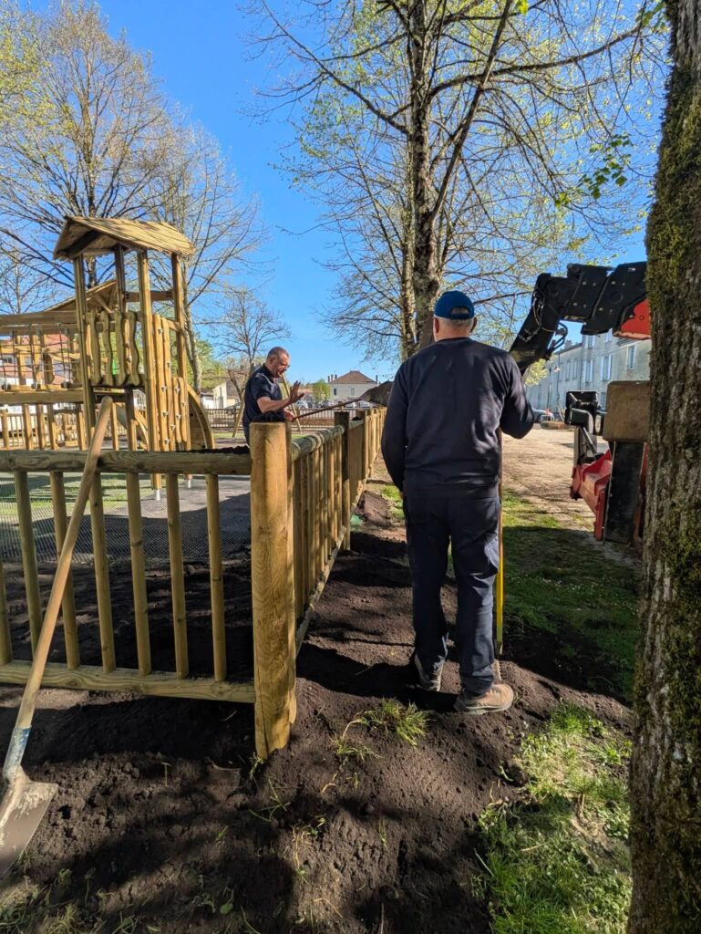 En parallèle, l’engazonnement du sol est en cours afin d’intégrer au mieux cette aire de jeux dans son environnement naturel et offrir un cadre agréable et harmonieux.