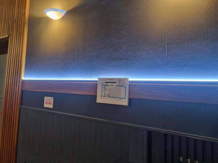 Les services techniques de la ville de Bazas ont installé des cordons lumineux au Cinéma Vog afin d’assurer la sécurité du public lors des sorties de séance.