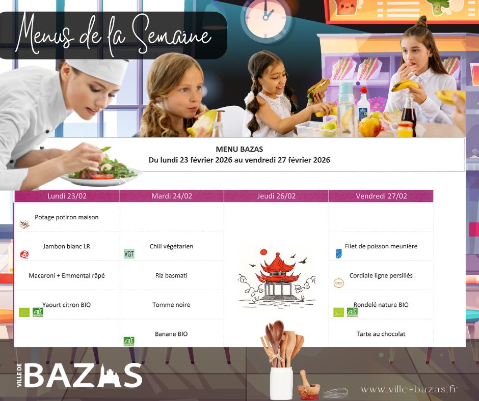 La Ville de Bazas vous informe des menus servis à l’école maternelle et élémentaire.