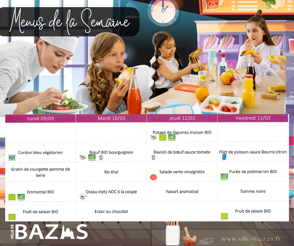 La Ville de Bazas vous informe des menus servis à l’école maternelle et élémentaire.